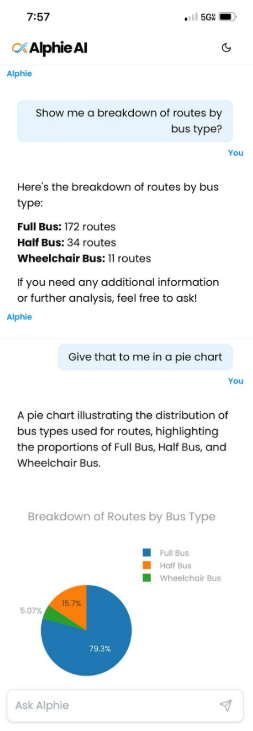 From identifying inefficiencies to tracking ridership data, Alphie transforms data overload into clear, actionable intelligence, with real-time answers at your fingertips.